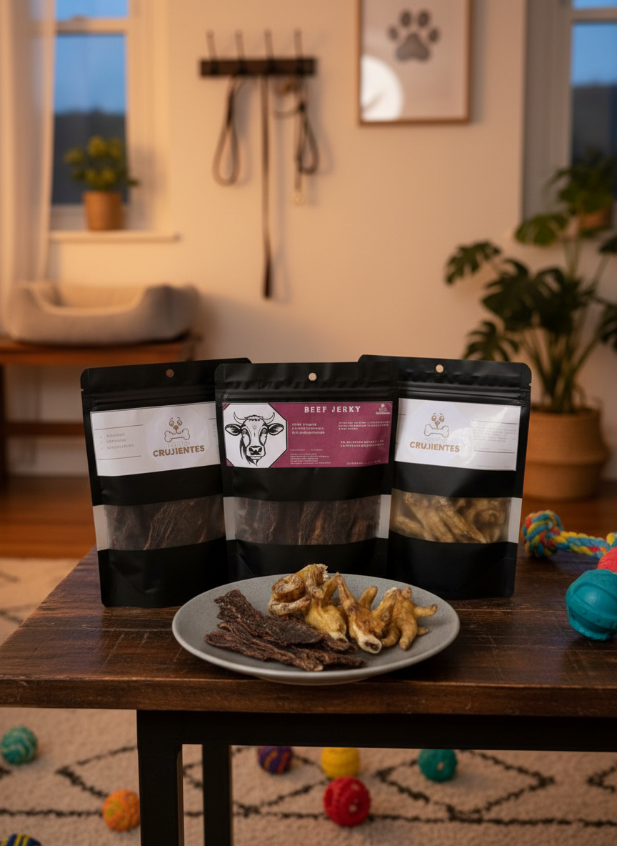 Buscando y buscando... decidí crear estos deliciosos snacks deshidratados, hechos solo con ingredientes de calidad, sin aditivos ni misterios, pensados para cuidar de quienes más nos alegran la vida.