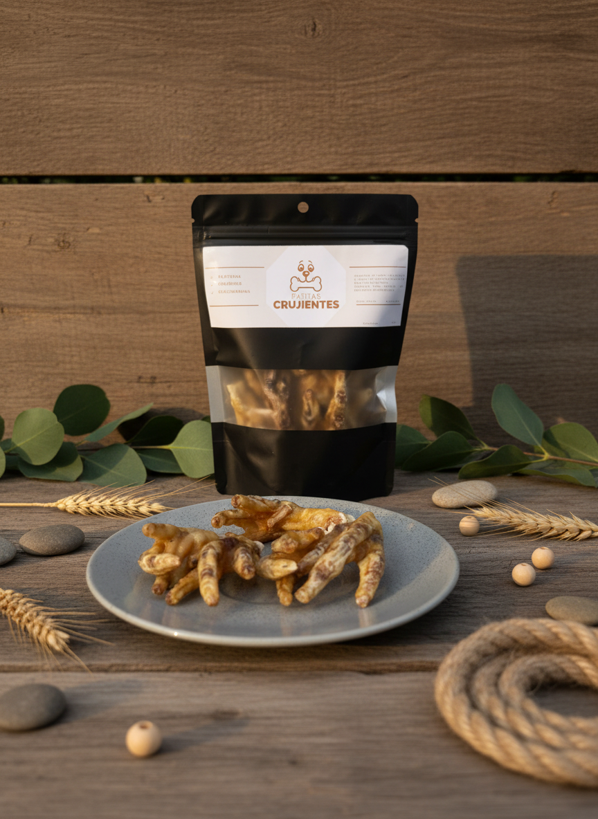 Nuestras Patas de Pollo Deshidratadas son un delicioso snack 100% natural, hecho con pollo de la mejor calidad, cuidadosamente deshidratado para preservar su sabor y nutrientes.